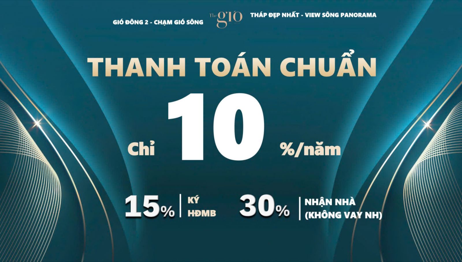 Nhằm mang đến trải nghiệm sở hữu dễ dàng và tối ưu dòng tiền cho khách hàng, The Gió áp dụng chính sách thanh toán chuẩn được thiết kế linh hoạt theo từng giai đoạn, phù hợp với cả người mua ở thực lẫn nhà đầu tư.
